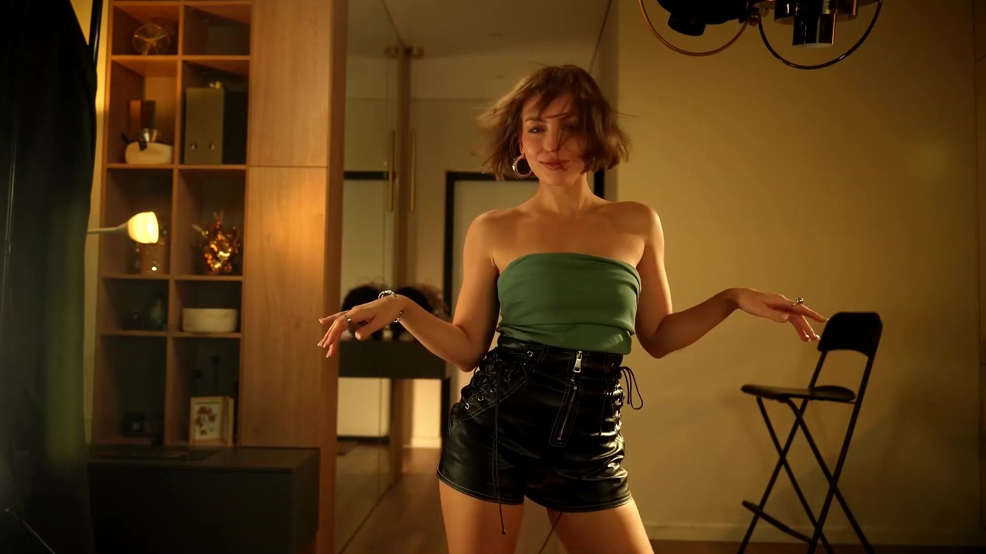 artmosphera sprays can cream on her body and rubs it around